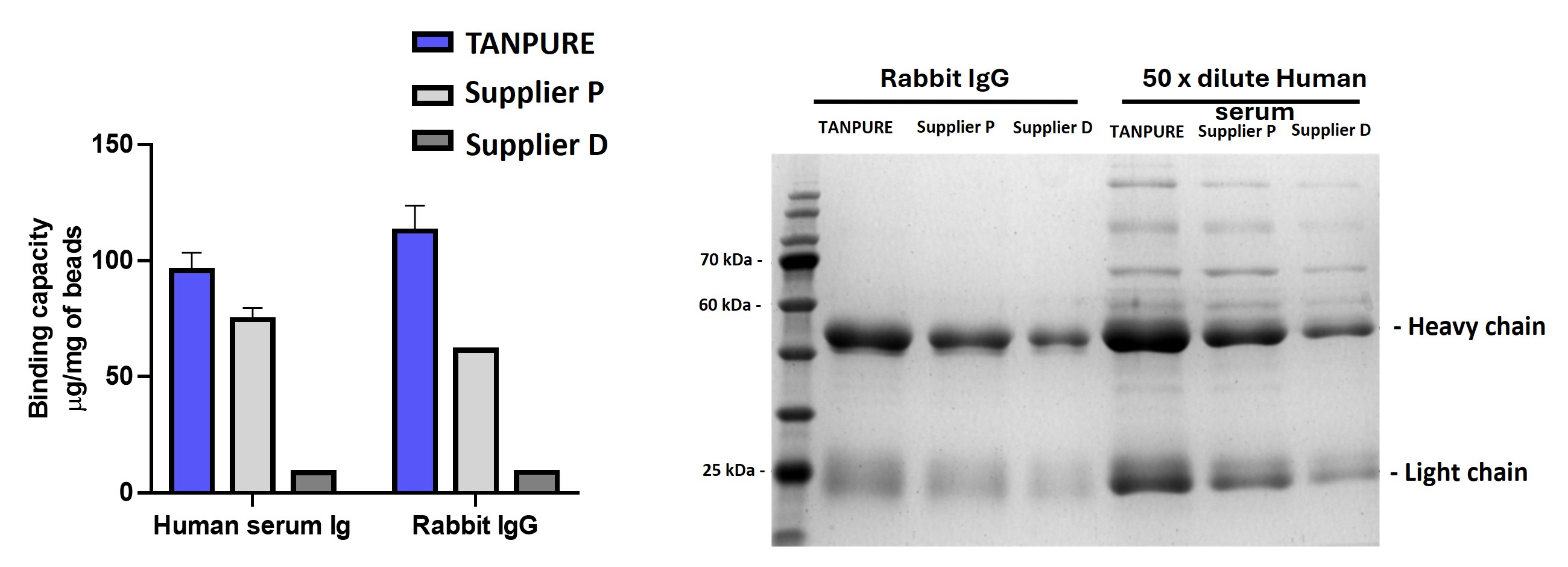 Figure 1. TANBead Protein A Magnetic Beads efficiently bind to specific antibodies to enable precise antibody purification from samples such as cell lysates and ascites fluid, delivering both high purity and high yield.